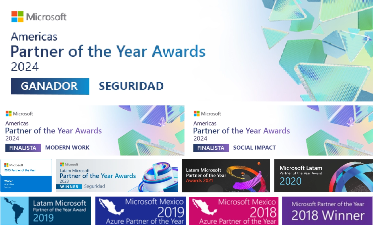 Este año fuimos reconocidos como ganadores del premio Microsoft Americas Partner of the Year 2024 en la categoría de Seguridad, y finalistas en las categorías de Modern Work y Social Impact, lo que nos llena de orgullo.